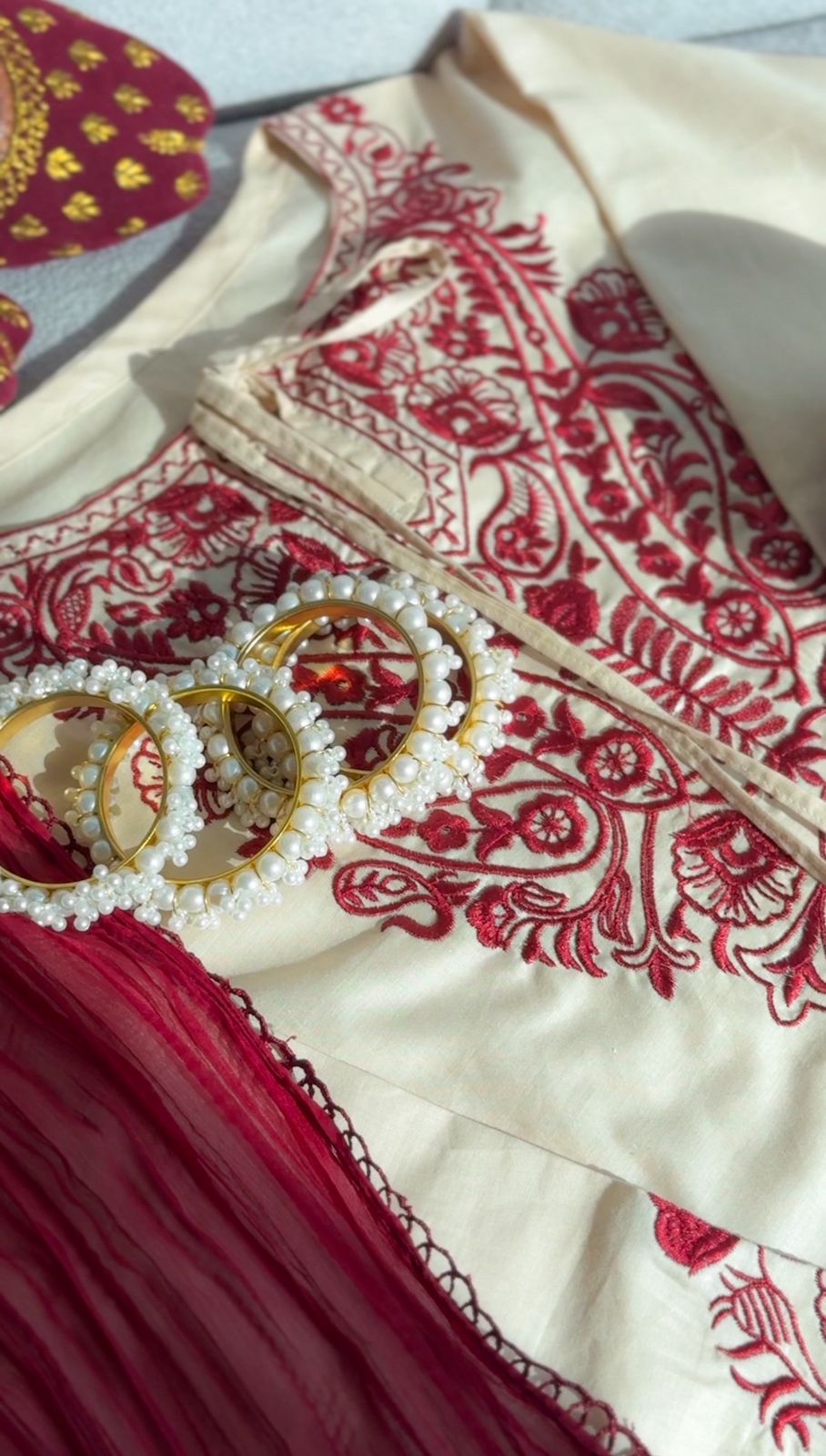 Intricate embroidery all over the sleeves, neck, daman, and hems