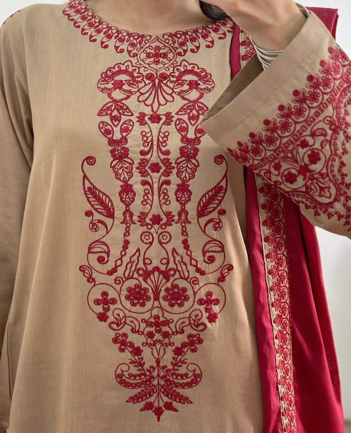 Work Details: lawn embroidered shirt, Embroidered work on daman & sleeves.
