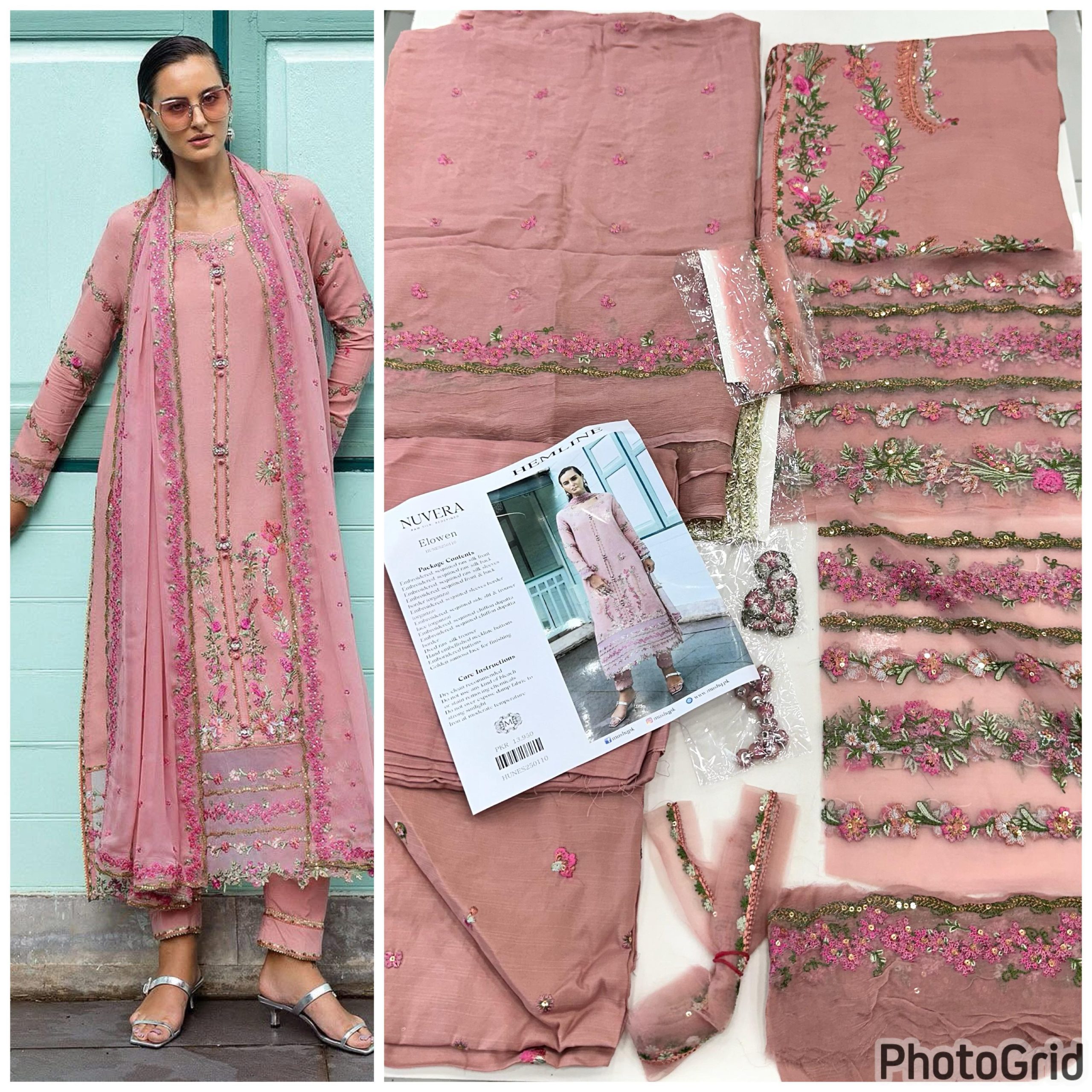- Embroidered, sequined side slit & trouser lace (organza)