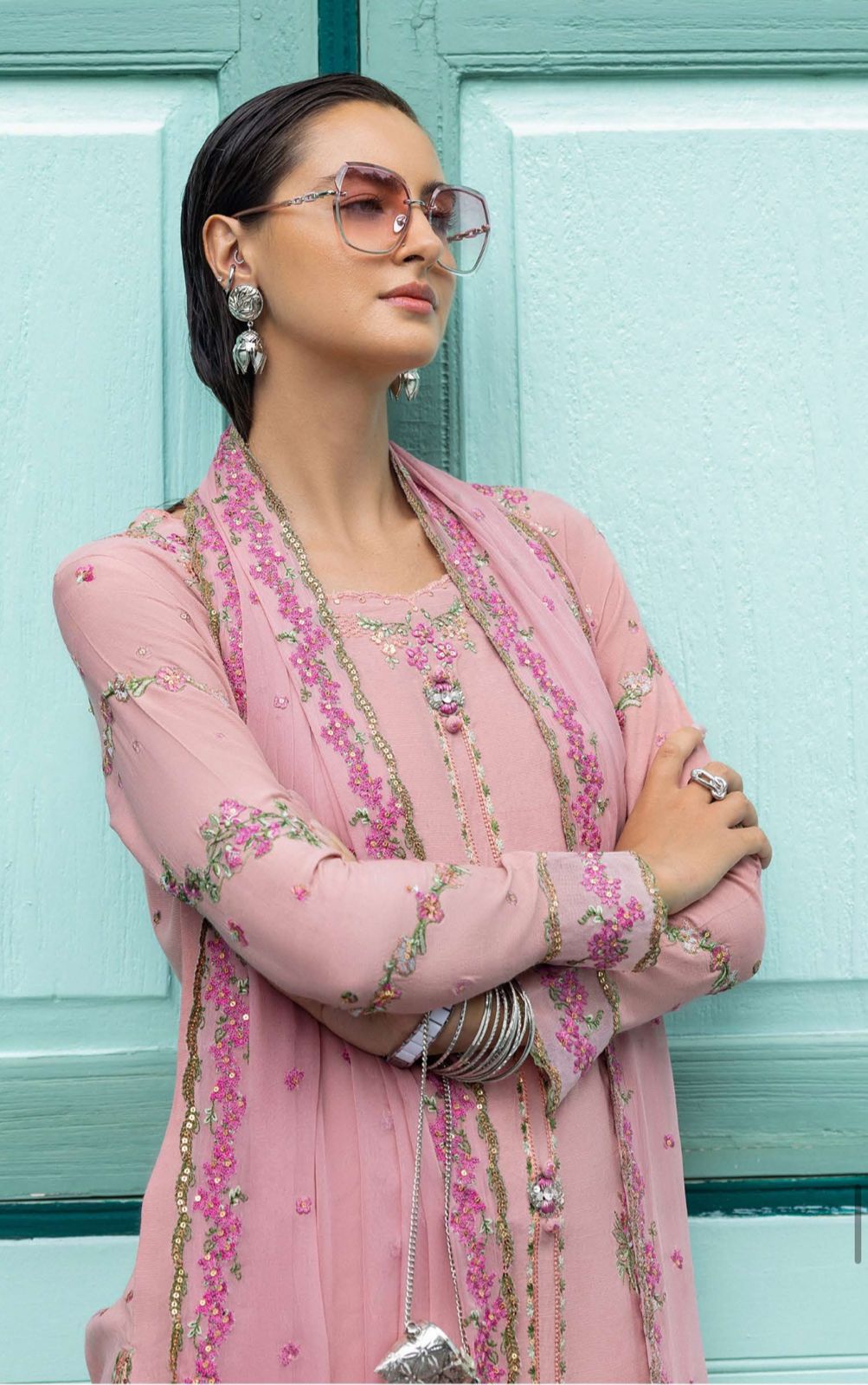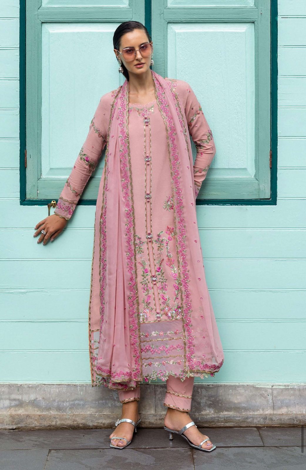 - Embroidered, sequined chiffon dupatta