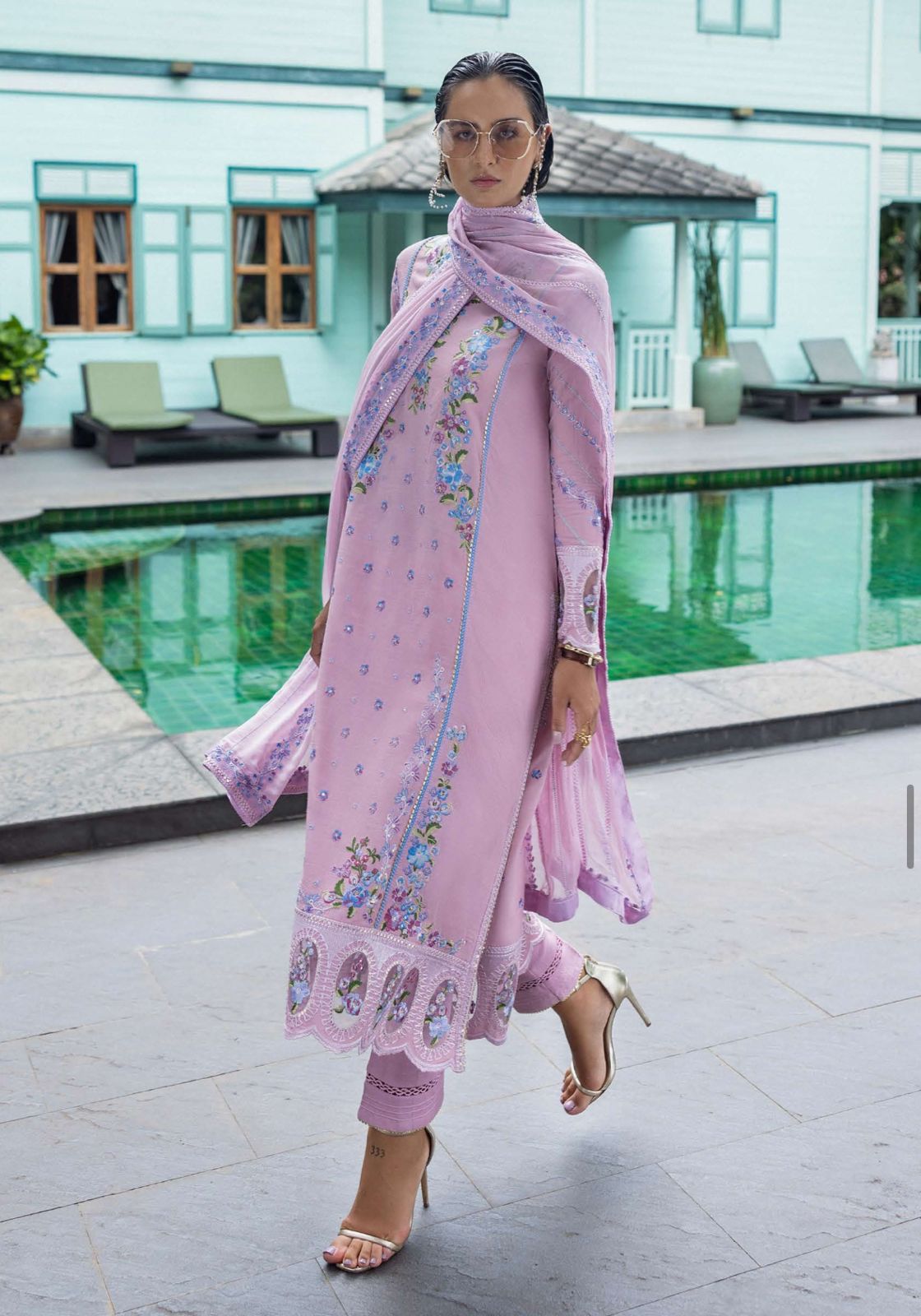 • Embroidered, sequined chiffon dupatta border