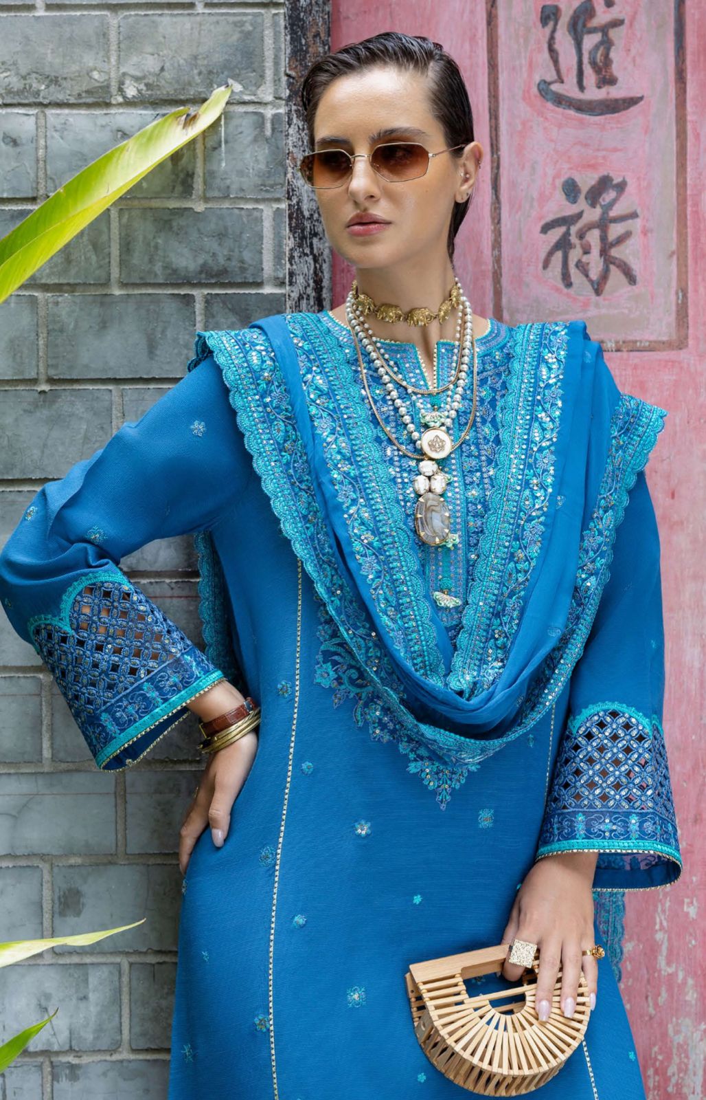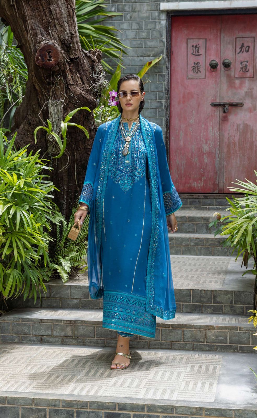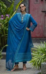 - Embroidered, sequined side slit & trouser lace (organza)