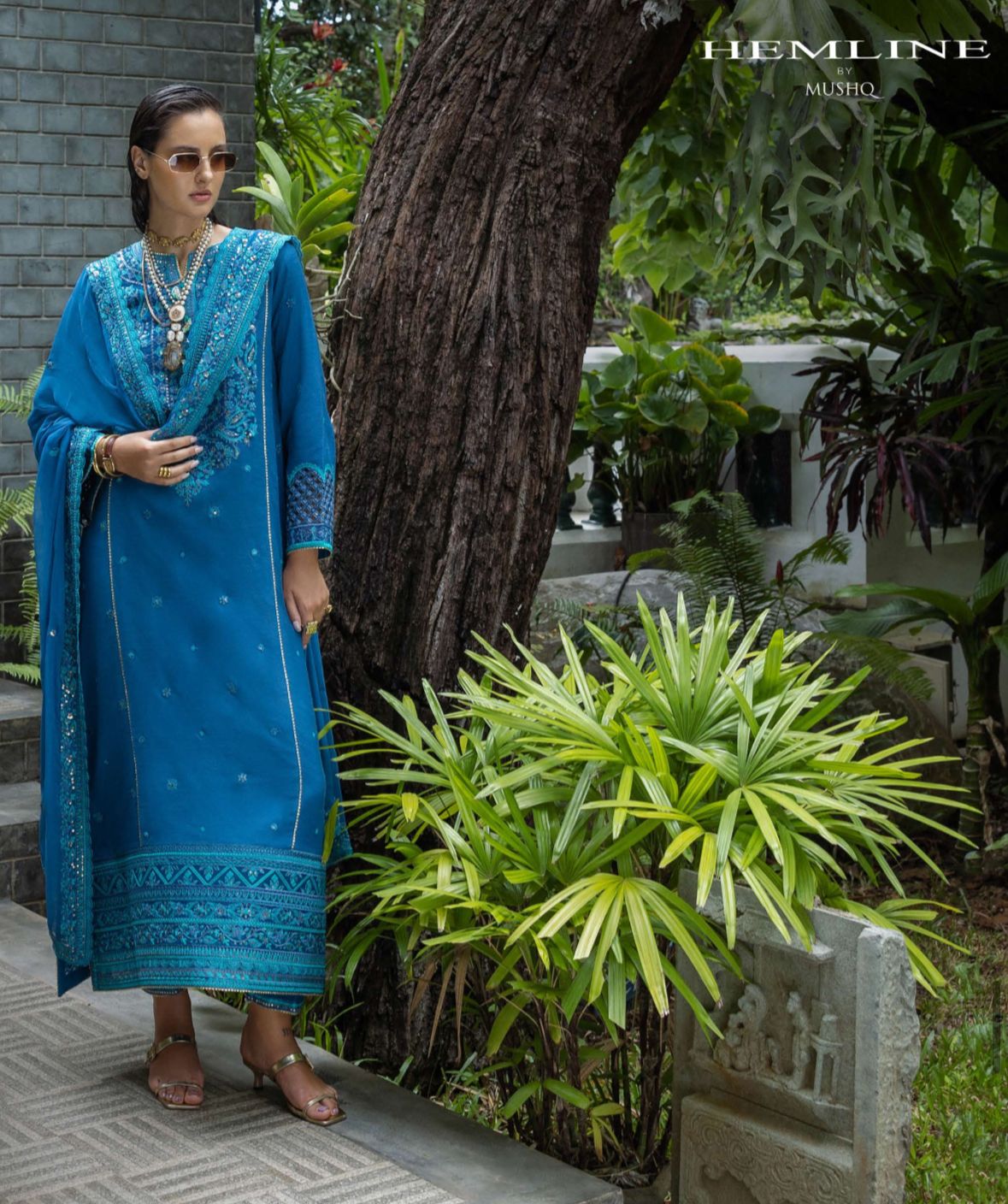 - Hand embellished neckline buttons