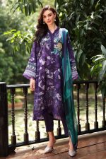 Nureh daily delights unstitched viscose collection paired with chiffon bamber dupatta for Sunny days With soothing prints to cool colors.